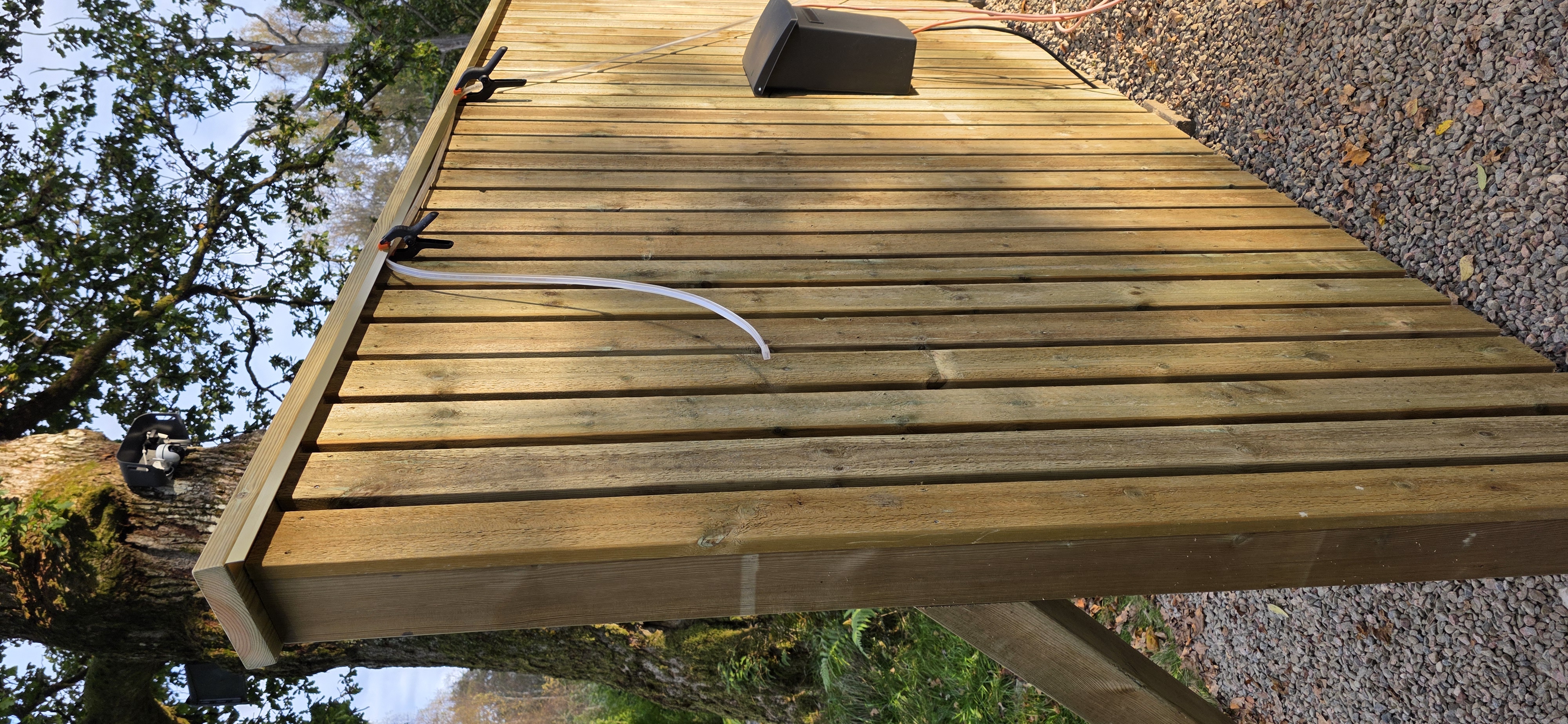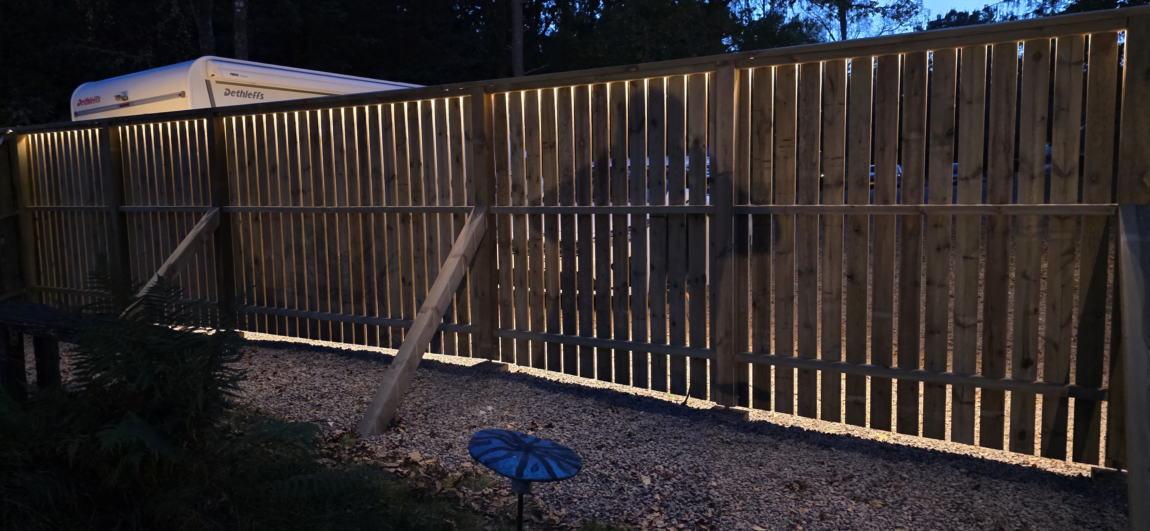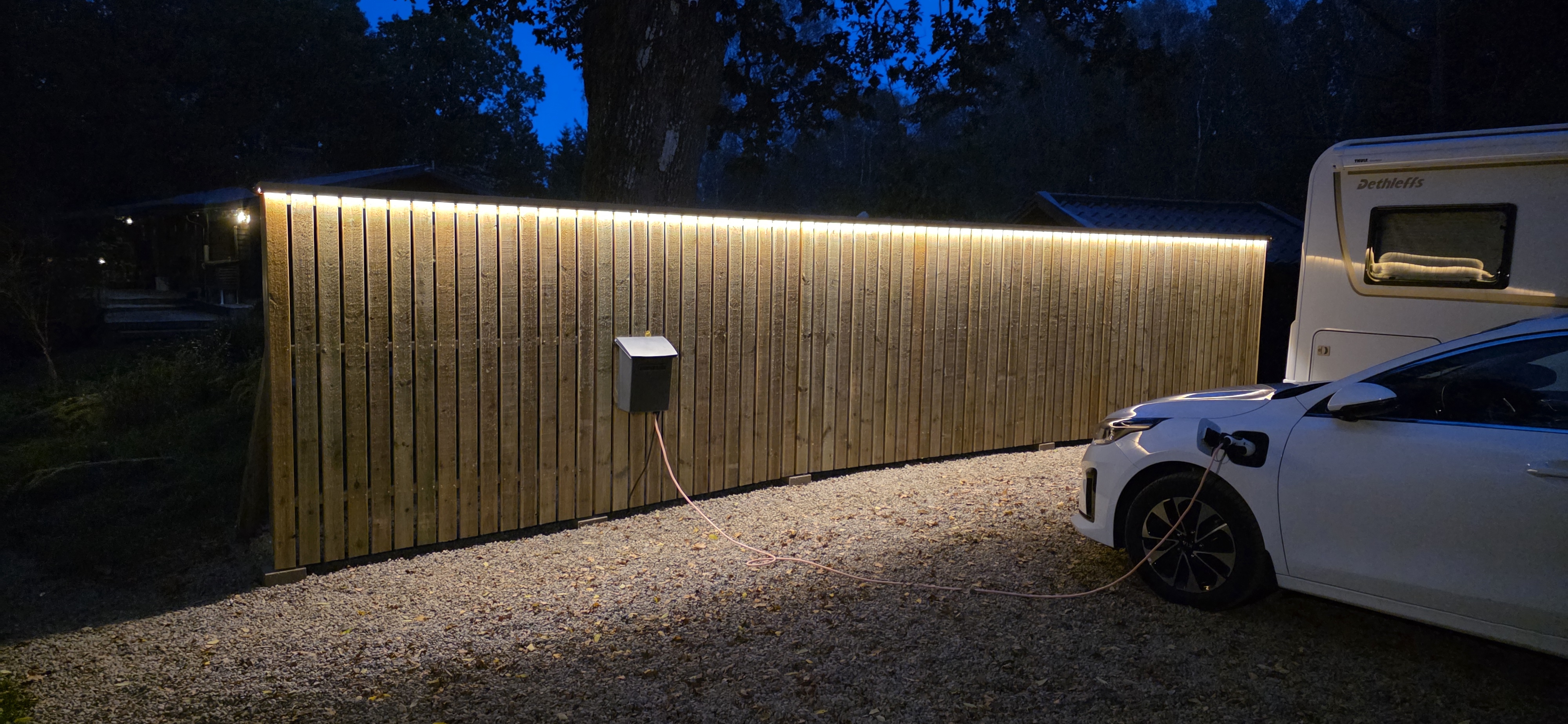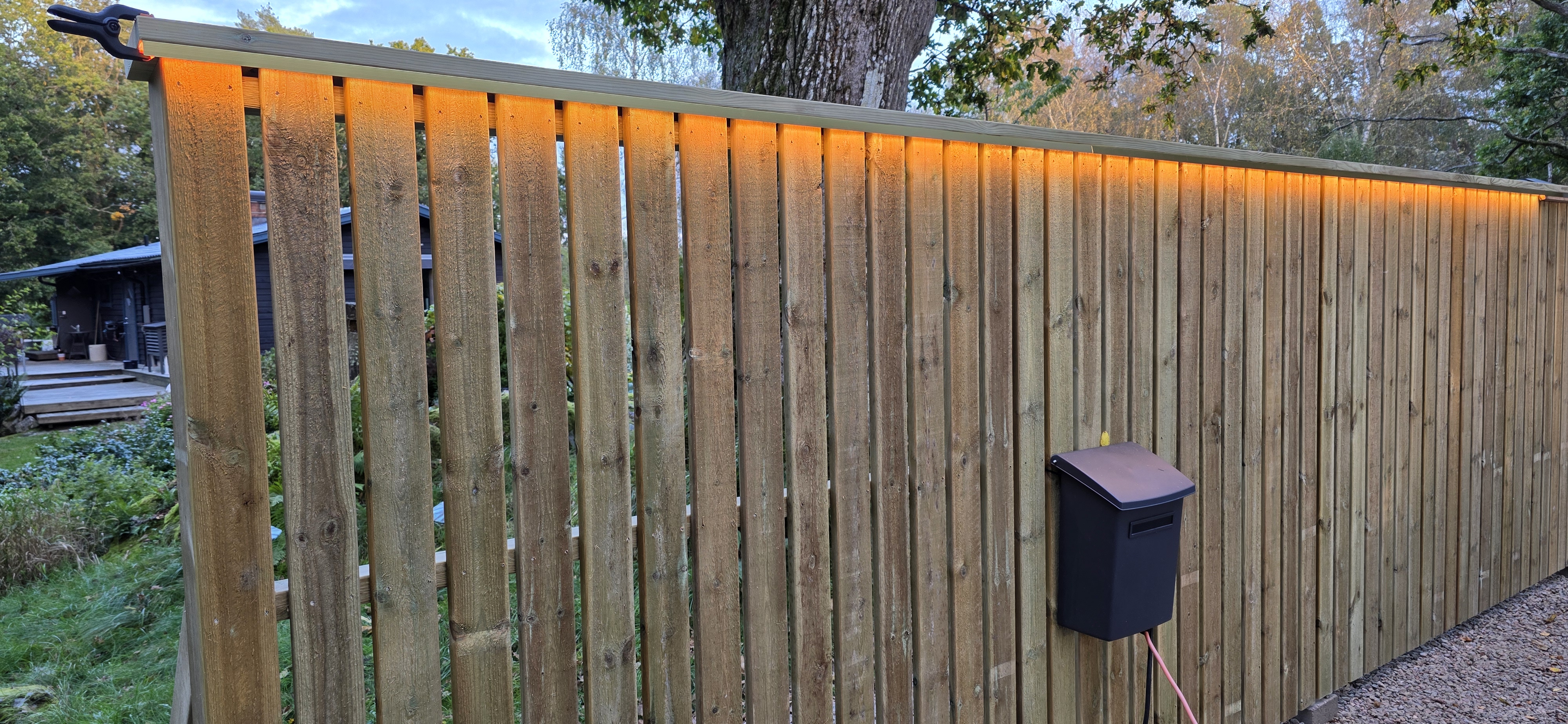 Ny belysning på staketet, 9m ledslinga 70W, limmad under en mässingslist. 2025-10-03 |